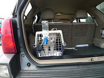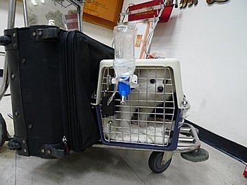 在機場做完核對流程~就把球球帶上車~準備送到台大做二十一天的檢疫~