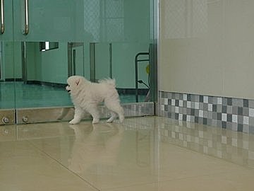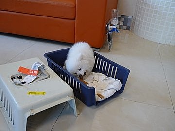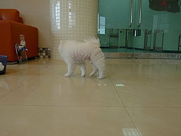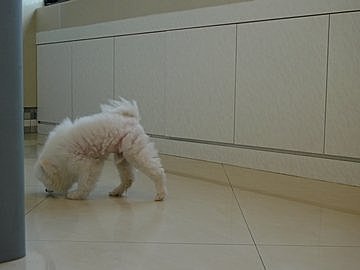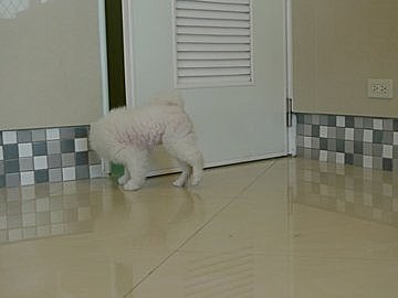 過了一會兒~球球終於起來活動了~到處的走走看看~