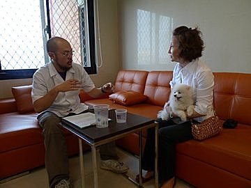 陳醫師請謝小姐填寫一些資料~球球一直在旁邊撒嬌~要謝小姐抱~