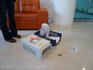早上十點半趕到機場~準備接謝小姐的寶貝_球球~是一隻很可愛的白博美哦~^^