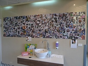 台大的檢疫站的牆壁上有很多狗狗和咪咪的照片~下面有二張卡片~是新貼上去的~