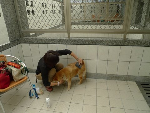過了二個小時~三隻狗狗終於到了台中中興大學隔離檢疫站~主人也在隔離檢疫站等待各自的愛犬~^^