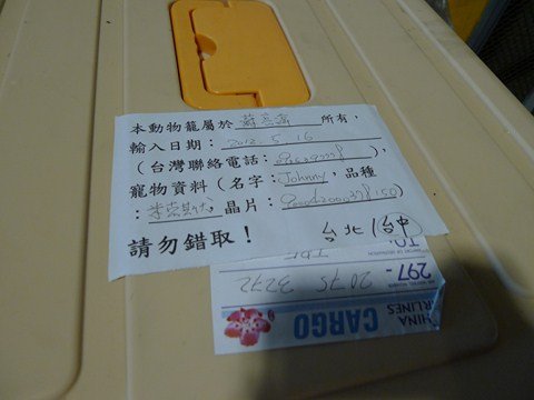 2012.5.16下午五點~吳小姐和徐先生的愛犬終於回到台灣了~