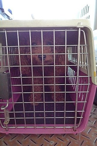 因為台大的檢疫籠位被訂完了~所以李先生的寶貝只好把二十一天的檢疫訂在中興大學~從台灣開車下來~李先生一臉的疲倦~但是~為了來看寶貝~再辛苦也要來啦~>”<