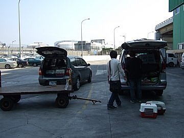 再來還有一隻米克斯貓、喜樂蒂和黃金獵犬~是要去台大檢疫的~他們都是從上海回台灣的哦~^^