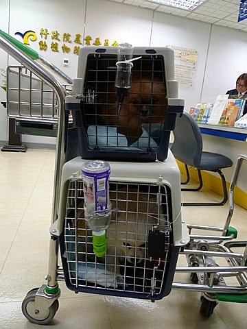 2010.12.6早上九點來到了桃園機場~原來是12/5有二隻狗狗回到了台灣~因為12/5是星期日~中興大學隔離檢疫所沒有開~所以只好12/6一早來到機場~準備跟這檢疫官押運狗狗到中興大學~