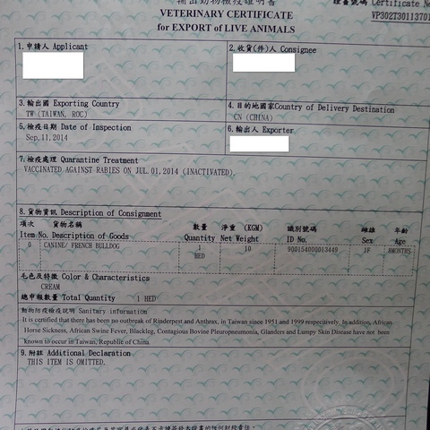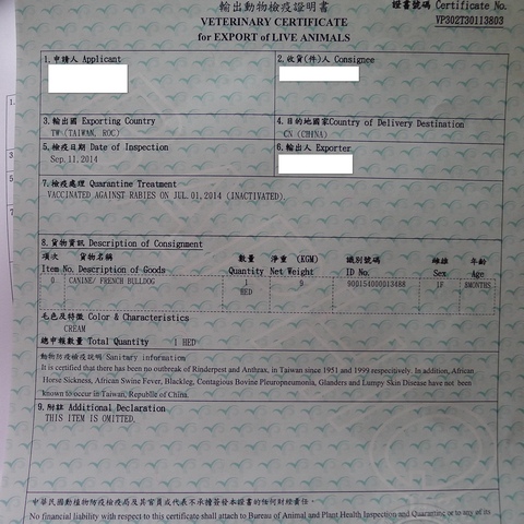 原來是陳小姐要帶著他的二隻可愛的法國鬥牛美眉一同前往大陸成都~