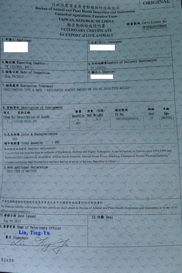 到了機場檢疫站~掛完號後~檢疫官就來做檢疫了~沒多久~台灣的輸出許可就拿到手啦~^^