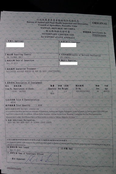 原來是李先生要帶著他的狗狗一同前往中國大陸~所以委託我代辨寵物出國檢疫~
