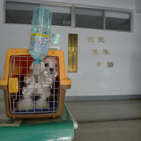 接到狗狗後~馬上前往台北檢疫站~辨理台灣的輸出許可和檢疫~