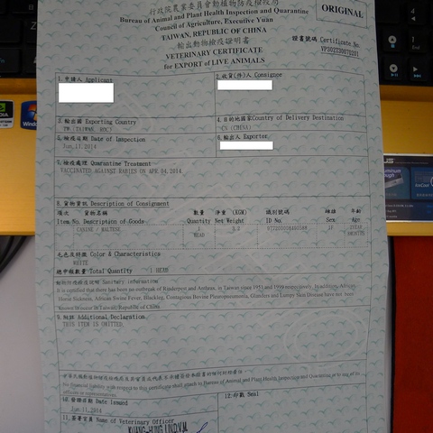 原來李先生委託我代辨寵物出國檢疫~要前往大陸福州~