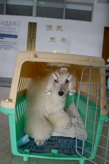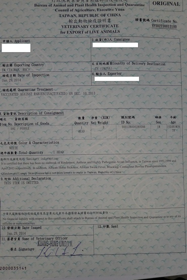 接到狗狗後~馬上前往台北檢疫站辨理台灣輸出許可和出國檢疫~