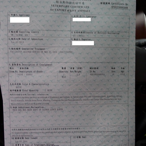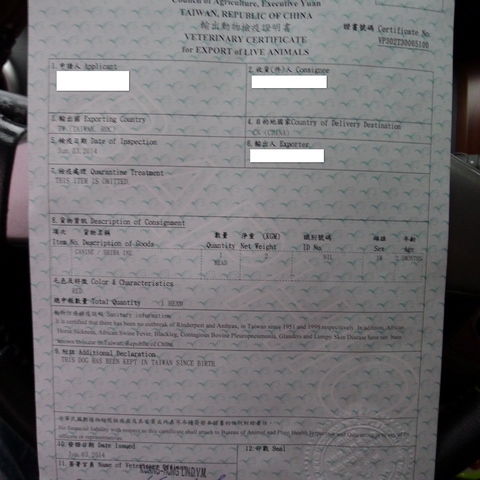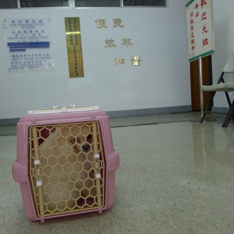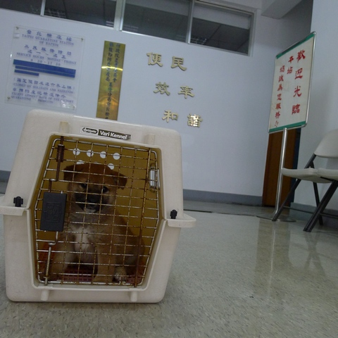 接完二隻狗狗後~馬上前往台北檢疫站~辨理台灣的輸出許可和檢疫~