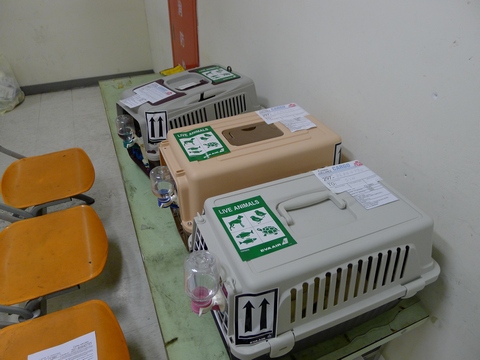 原來是這三位小朋友的主人已經在新加坡 了~委託我代辨寵物出國檢疫並以航空貨運的方式寄往新加坡 ~