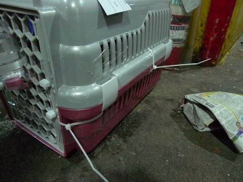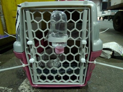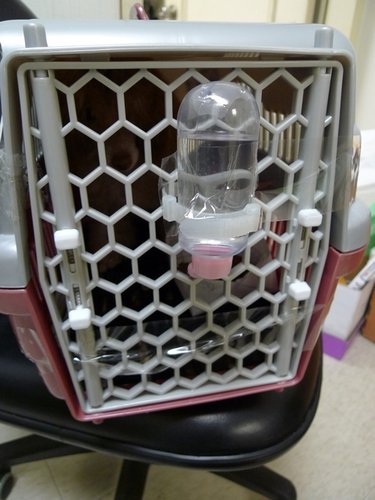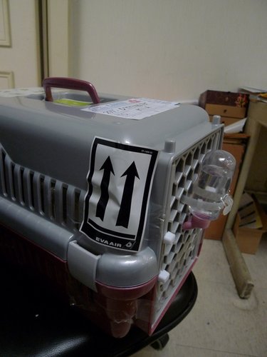 一切都OK後~再放上飼料~必竟貴賓弟弟可是要在飛機上很久的呢~