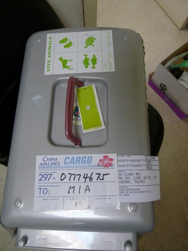 一切都弄好後~狗狗就入艙了~也平安的到達了美國邁阿密~希望貴賓弟弟在美國能一切順利~