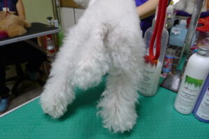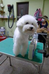這隻白貴賓就是今天的主角~準備試用WAMPUM貝殼洗毛精護理系列產品~