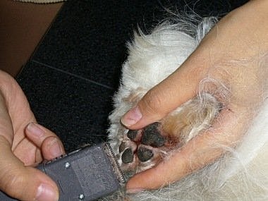 先做基本的小美容~剪腳底毛~清耳朵~刷牙