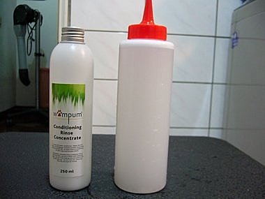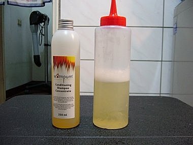 洗完後再用潤絲精比例(1份原液:20份溫水)直接淋在身體上~等毛髮完全吸收後~就可以吹乾啦~