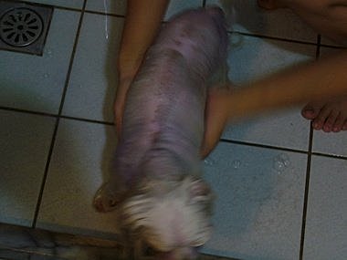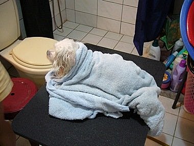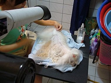 洗完miffy和包毛完後~看看時間~哇~以經過了一個半小時了~evonne也睡飽了~再來就換他來洗囉~
